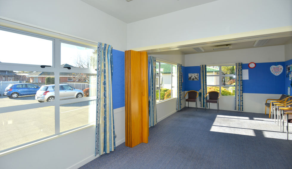 The Lounge is a large meeting room, which can be closed off from the main auditorium. This is connected to the kitchen via a servery.